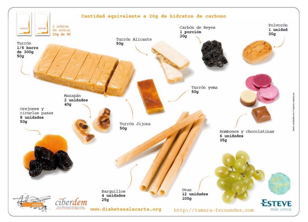 Figura 1. Dulces típicos navideños y cantidades de carbohidratos. Fuente Diabetes a la carta.